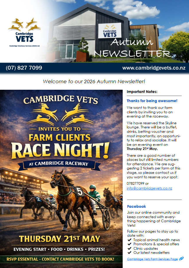 Download our Vet Advisor magazines: Click on the links below or search for a topic using the Search Button Farm Animal ServicesMeet our Vets Our Farm Services Farm Animal Information Farm Products Promotions/Events Search for: Spring Mating 2024 Spring 2024 Autumn 2024 Summer 2023/2024 Spring 2023 Winter 2023 Autumn 2023 Summer 2022 Winter 2022 Spring 2022 Autumn 2022 December 2021 September 2021 July 2021 April 2021 December 2020 September 2020 June 2020 April 2020 February 2020 December 2019 September 2019 June 2019 April 2019 February 2019 December 2018 September 2018 June 2018 April 2018 February 2018